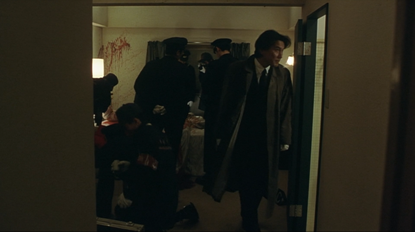 Kiyoshi Kurosawa’s Cure (1997) has all the familiar markings, as it begins, of the serial killer film: bizarre, gruesome murders; an angsty, trench coat-clad detective; a race to catch the killer as the body count grows. The case Detective Kenichi Takabe (Koji Yakusho) investigates—random murders by different perpetrators, each unable to explain their actions, a tell-tale X carved into the neck of each victim—has enough high-concept style to set up a solid, ninety-minute thriller (or a compelling hour of procedural TV). And, in many ways, Cure is just this kind of serial-killer story. The gore, the dread, the puzzle-like quality of the crimes, the obsessed detective—these all conform neatly to our expectations.